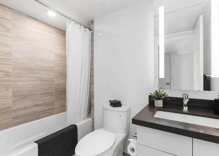 Localizada no distrito Centro de Toronto, esta casa de férias de Toronto também está próximo de Museu Real de Ontário. Situada nas proximidades do Parque Queens, esta acomodação fica a uma distância de 2.1 km da Sinagoga de Kiever. Os destaques educacionais situados a uma pequena distância da pousada Executive 1Br-1Ba Condo In The Heart Of Downtown incluem a Universidade de Toronto.